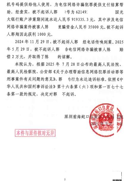 本案由深圳市公安局南山分局侦查终结,以被不起诉人郭涉嫌帮助信息网络犯罪活动罪,于2025年5月16日向本院移送起诉。本院于2025年7月18日以深前检刑诉[2025]282号起诉书向深圳市南山区人民法院提起公诉。因司法解释发生变化, 本院于2025年8月11日撤回起诉。深圳市南山法院于2025年
